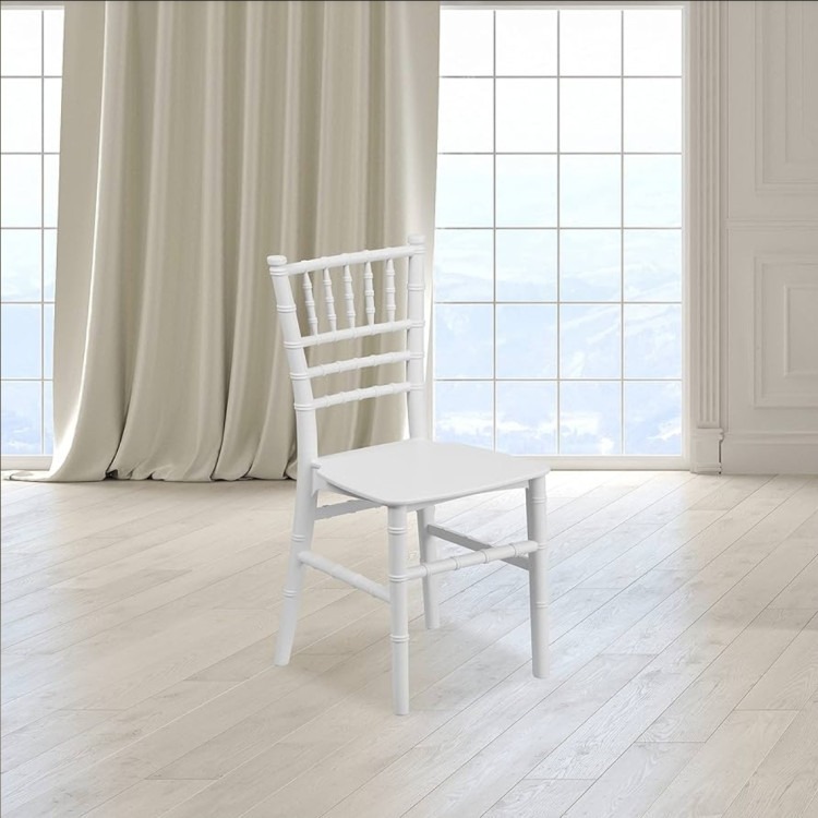 A charming kids’ table and chair set that turns any party or playdate into a comfortable, picture‑perfect gathering—small, sturdy white chairs with classic spindle backs paired with a low round table sized just for little guests; perfect for birthday parties, tea parties, craft stations, or outdoor events. The lightweight chairs are easy to move and arrange, fit colorful seat cushions, and create an orderly, kid‑friendly dining or activity area that looks neat in photos and keeps children at a safe, accessible height. Ideal for event rentals where function and a polished, kid‑appropriate aesthetic both matter.